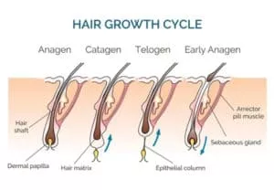 The role of melanocytes is to produce melanin, which is responsible for the hair colour. Keratinocytes are cells that make up the hair shaft. The melanocytes inject pigments into the keratinocytes of the new hair shaft, which determines the colour of the hair. The colour lasts during the hair cycle, from when the hair is first growing to when it falls out.