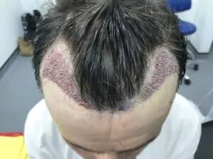 For the next couple of days after surgery, a patient’s main concern is keeping the scalp clean while scabbing and swelling heal. Around day 3-4 after your surgery, swelling and redness may peak. This is where scabs also begin to form.
